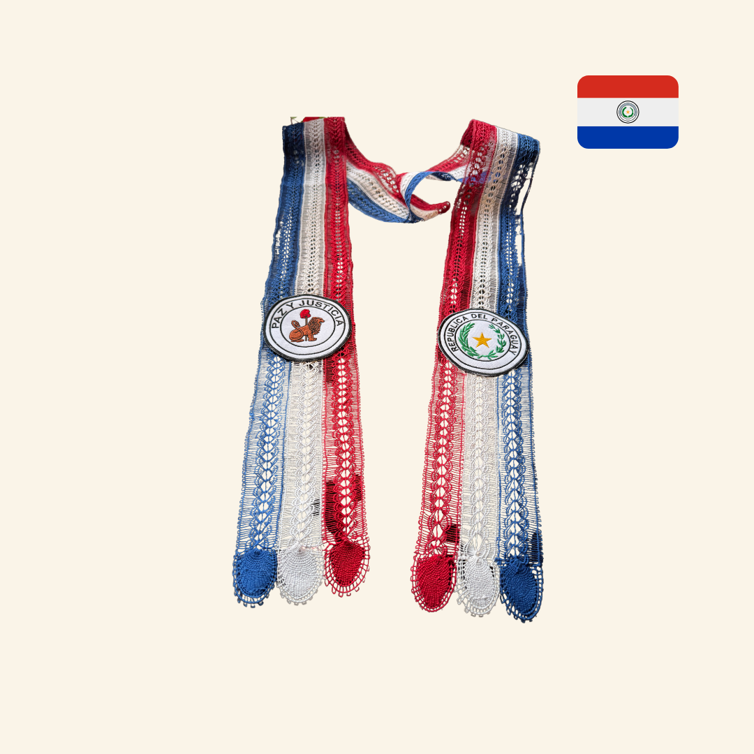 Celebrate your academic achievement with our authentic Paraguay Ñanduti Graduation Stole. This exquisite handcrafted accessory features the intricate Ñanduti lace technique, a treasured Paraguayan textile art dating back centuries. The delicate spider web-like patterns symbolize accomplishment and cultural heritage, making it a distinguished addition to your graduation regalia while honoring Paraguayan traditions.